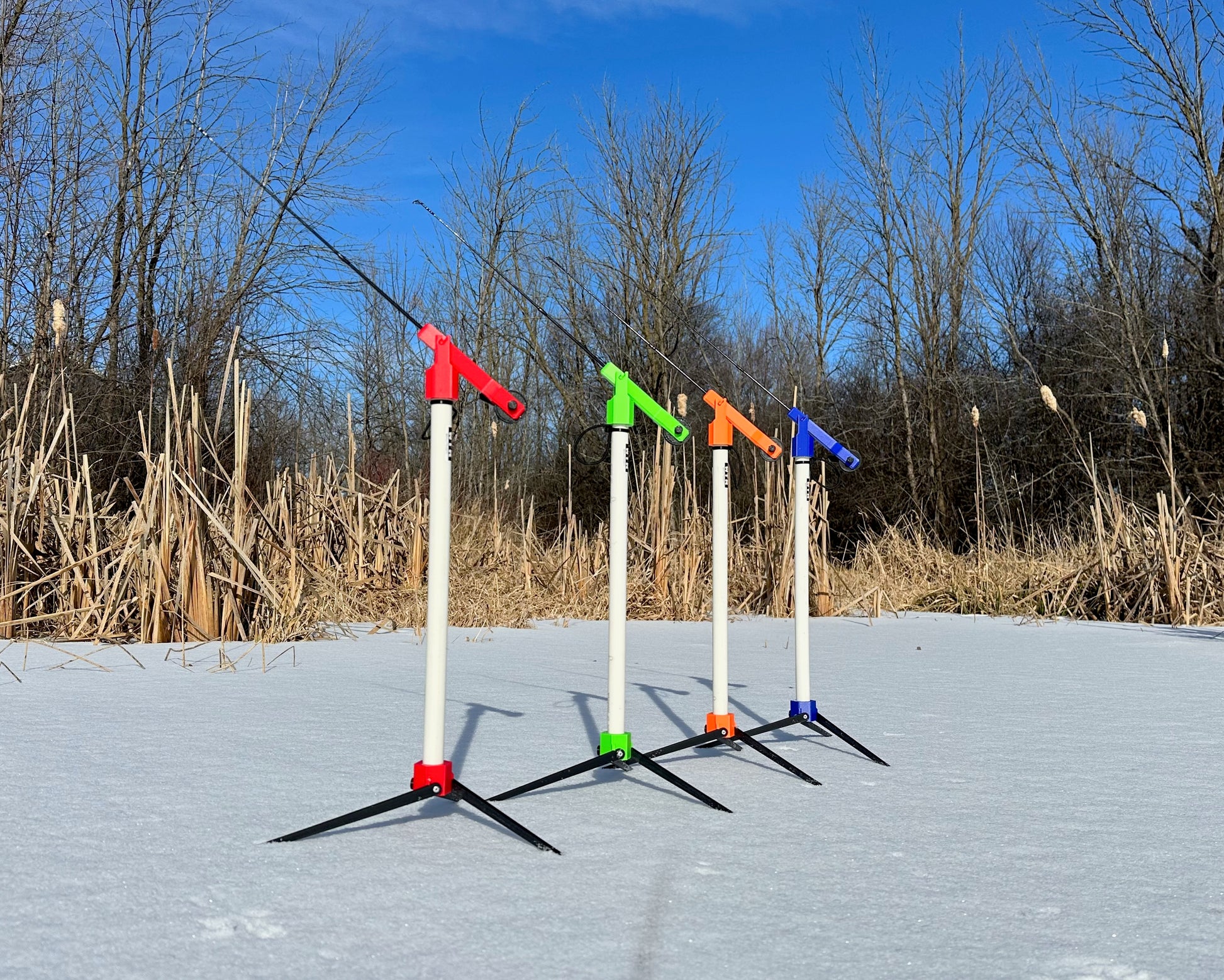 Our third generation tip downs include black rod blanks for better on ice visibility, removable spools for easy setup, and a smaller more portable design.
